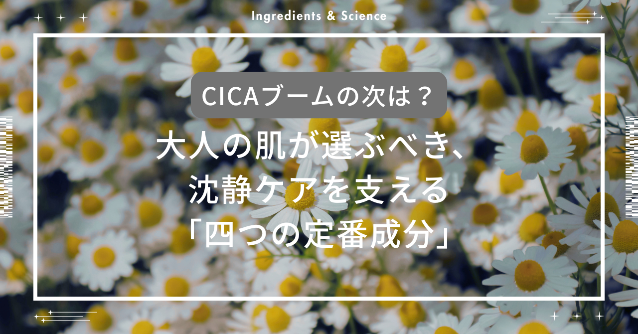 本当に信頼できる成分は、時代が変わっても形を変えて残り続けます。CICAの「次」を探すよりも、実績のある成分を賢く選び直すことが、大人のスキンケアには必要なのかもしれません。